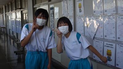 換気徹底中、休み時間の様子