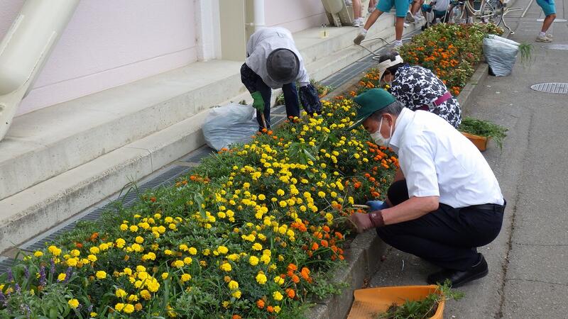 蒸し暑い中、地域コーディネーターの方をはじめ、6名のボランティアの方々に来ていただき、南校舎前の花壇の雑草を手際よく刈り取りました。花いっぱい、元気いっぱい、姿川中の生徒が新型コロナに負けず、安全・安心に学校生活を過ごすとともに、多方面で活躍することを期待しています。
