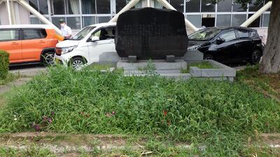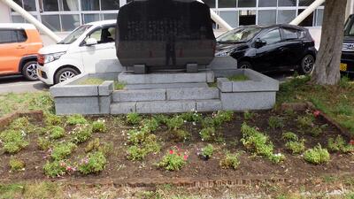 石碑の前の花壇(除草作業のビフォーアフターです)