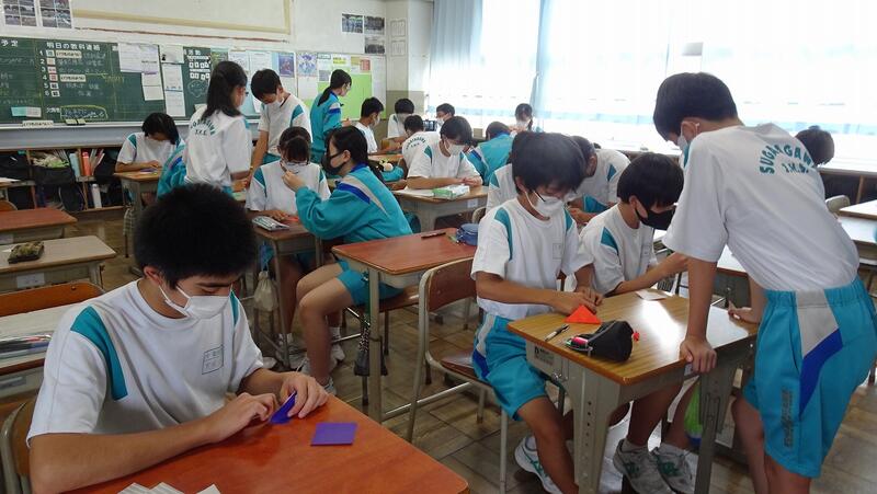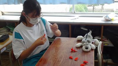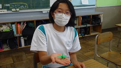 7月5日(火)、2年生が被爆体験のDVDを視聴し、平和への願いを込めて折り鶴を作成しました。