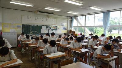 7月6日(水)、3年生が3回目の実力テストに臨みました。