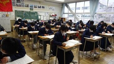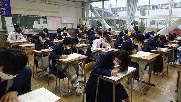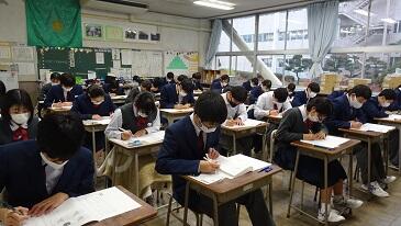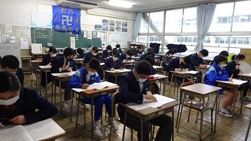 さすが、3年生です。1か月後の本番さながらに、問題文をしっかり読みながら、一問一問真剣に取り組んでいました。各クラスの画像をご覧ください。