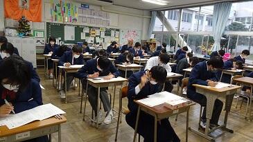 12月8日(水)、3年生が学習内容定着度調査を実施しました。