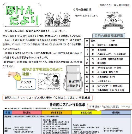 主な内容は、健やかな学校生活のために、警戒度に応じた行動基準、withコロナ関係~今、私たちにできること~等です。