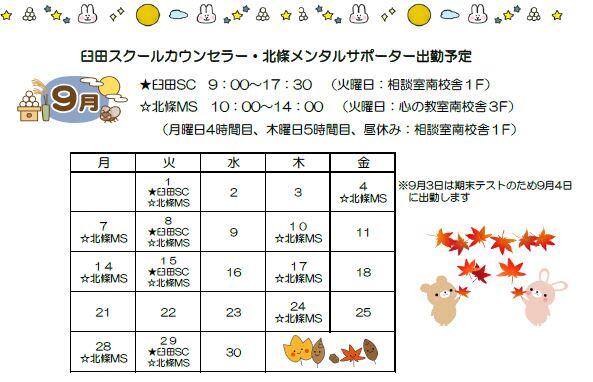〇9月の予定については、このホームページ掲載のカレンダーをご活用ください。