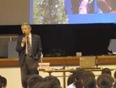 6校時に,1年生を対象に歯科講話を実施しました。学校歯科医の加納尚先生から,歯や口腔の健康についての専門的なお話や正しい歯磨きの仕方等についてのお話をいただきました。「中学時代に虫歯にならなければ一生大丈夫」とのお話もありました。