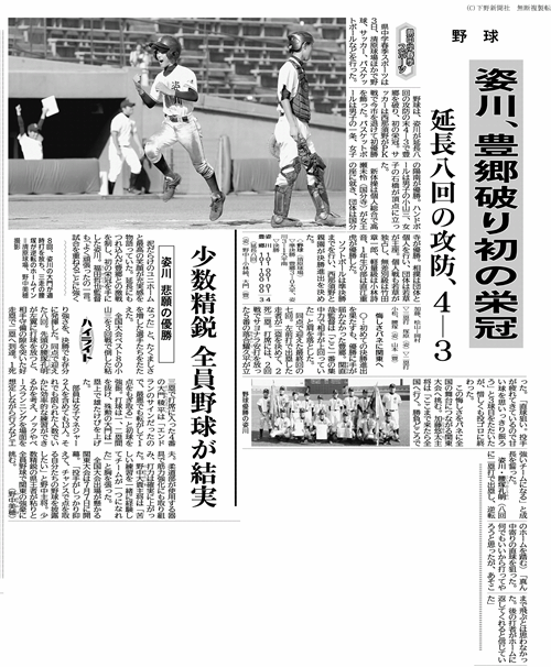 2日から行われていました春季県大会において,野球部が延長8回の攻防の末4-3で豊郷中を破り,初の栄冠を勝ち取りました。全国大会出場を目指し,7月7日に開幕する関東大会に出場します。