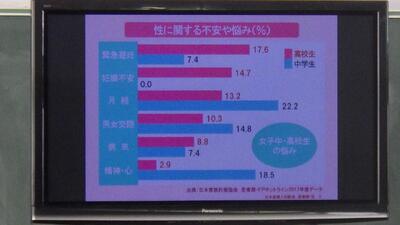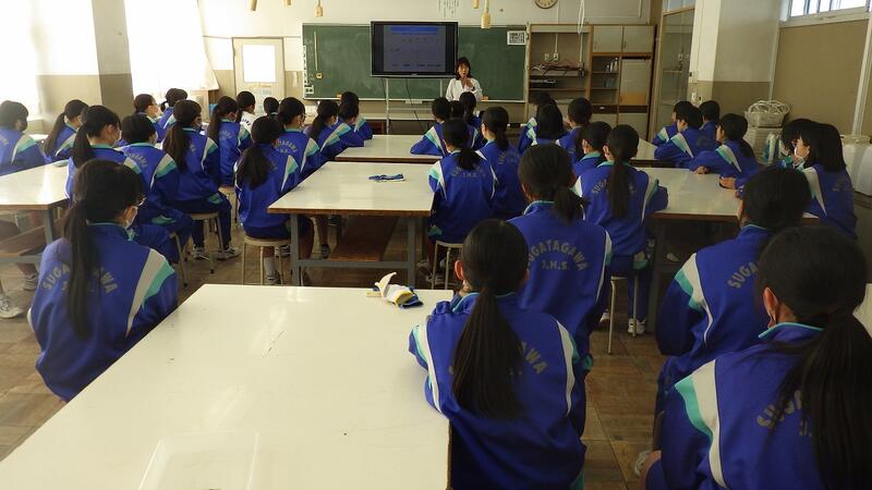 11月30日(木)2年生に対して、養護教諭から「自分の体を知る。命を大切にする。将来をイメージした行動ができる。」など丁寧に話がありました。生徒は真剣に授業に参加していました。