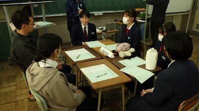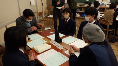 生徒にとっては初めて大人の人と意見を交換するということではじめは緊張していましたが、会議が進むにつれ自分の考えをしっかりと伝えることができました。