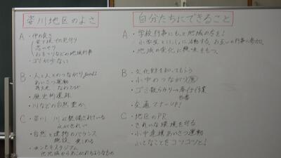 「自分たちにできること」→・地域の変化に興味を持つ。・地域のよさをPRしていく。・小中のつながりを強くする。・きれいな環境を守る。