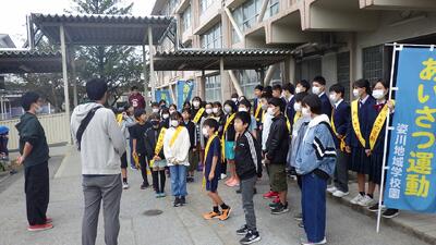 11月6日(月)、地域学校園小中合同あいさつ運動を実施しました。