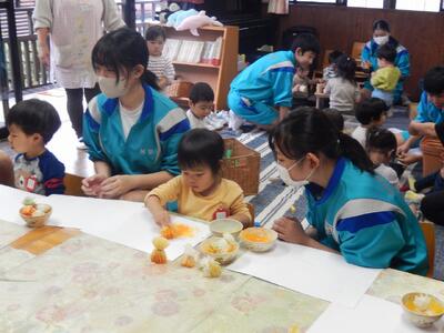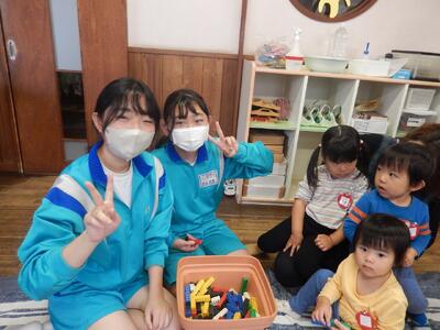 *生徒たちは、幼児の生活を観察するだけでなく、遊んだり、触れ合ったりすることを通して楽しさや喜びを体験することができました。自分の幼児期を振り返り、生命の尊さを肌で感じ、改めて、親をはじめ周りの人への感謝の気持ちを持つことの大切さを考えるよい機会となりました。