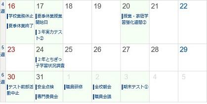 ※【メニュー】の行事予定表をクリクすると下記のカレンダーが表示されます。