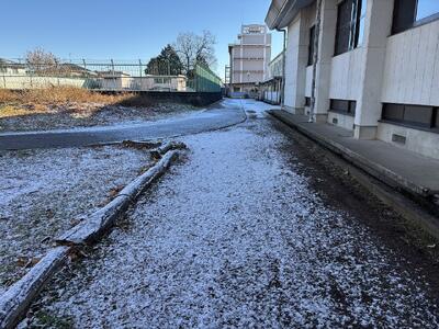 おそらく、日中の日差しですぐに消えてしまうと思われますが、つかの間の雪景色です。