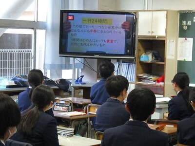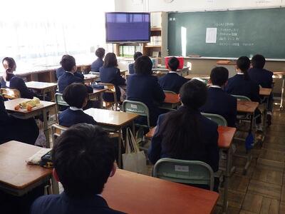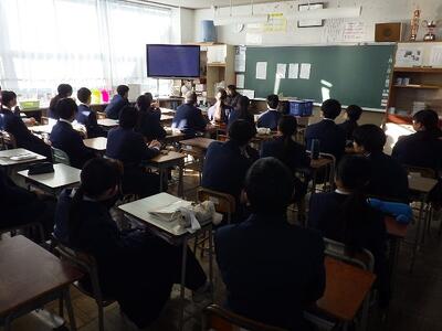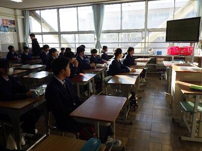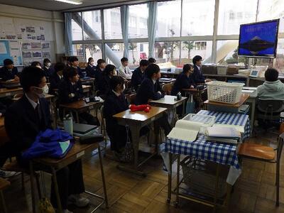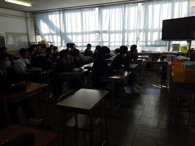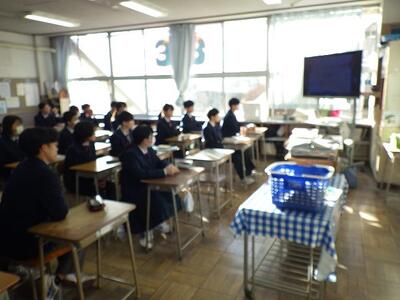 全校集会では、校長先生から巳年についてのお話や「1日24時間は誰にとっても同じだけれども、どのように充実させるかが大切です。」というお話がありました。続いて、学習指導主事からは、現在の3年生が1,2年生のころに勉強で頑張っておきたかったことについてのアンケート結果を基に、後悔しない学習への取組方法や効果的な学習方法について説明がありました。改めて新しい年が始まったことを感じていました。