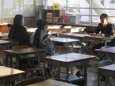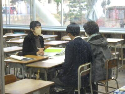 3年生は主に進路について、1,2年生は(二者懇談もあり)これまでの学習や生活などを振り返りながら、今の学年でのまとめや進級にあたっての心構え、進路についてなど多岐にわたって懇談を行います。