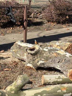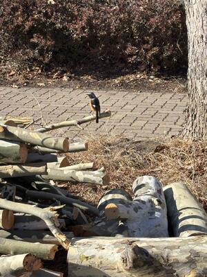 2人で1日がかりで枝?幹?をやっと1本処理しました。作業の合間にはこの枝を憩いの場としていたのか、「ジョウビタキの雄」が様子を見に来てくれました。本校は樹木が本当にたくさんあるので、多くの野鳥が過ごしているようです。「チーム姿中」共生していけるようこれからもよろしく!