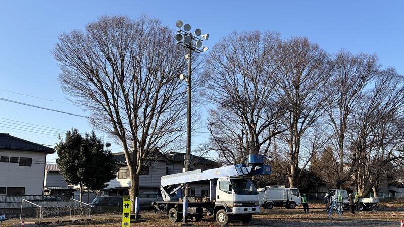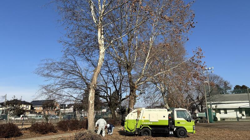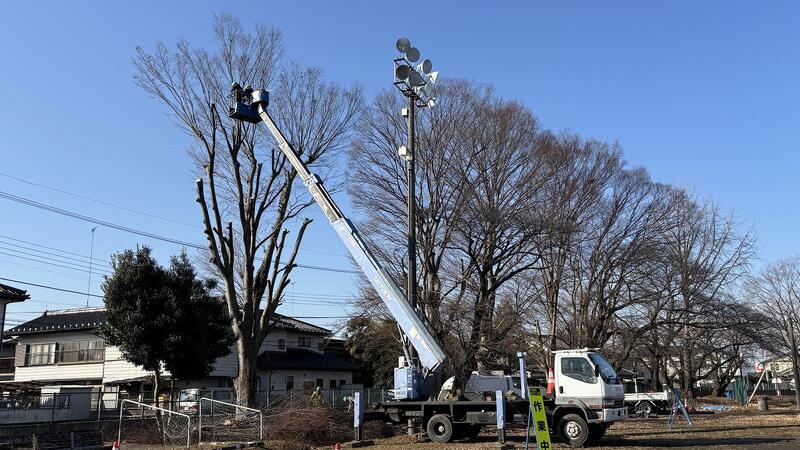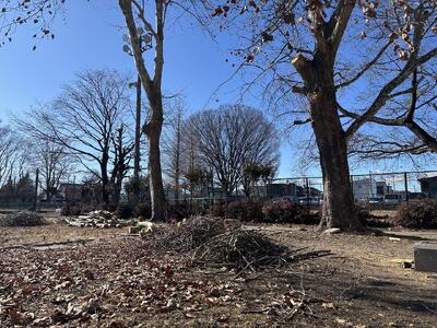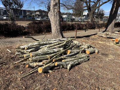 同日、機動班の皆さんには先日の枝の処分とテニスコート北側のケヤキの枝落としをしていただきました。