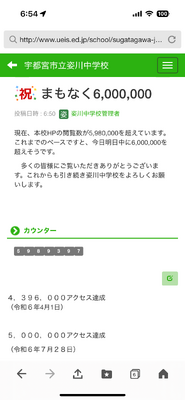 現在、本校HPの閲覧数が5,980,000を超えています。これまでのペースですと、今日明日中に6,000,000を超えそうです。