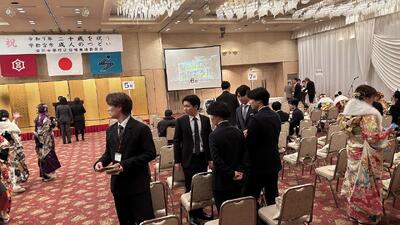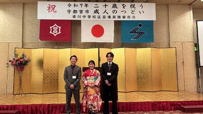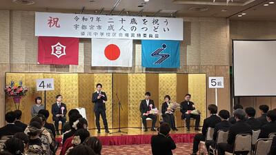 令和7年1月12日(日)宇都宮市のホテルニューイタヤにおいて、姿川中学校区の「二十歳を祝う成人のつどい」が宇都宮市長様、市議会議員様、恩師の先生方にご出席いただき盛大に行われました。今年の成人のみなさんはコロナ感染症の拡大により、中学校3年生の2月から学校休業を余儀なくされ、例年と違う卒業式、例年と違うお別れをした学年でした。