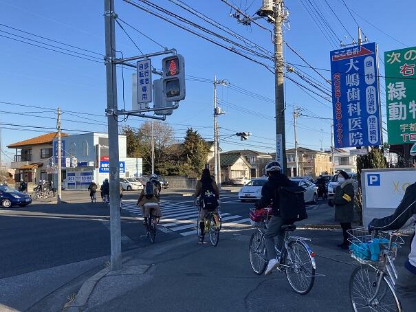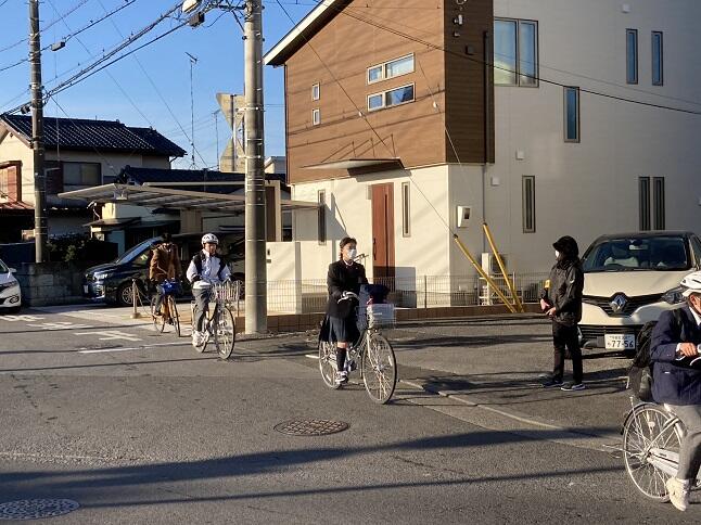 自転車通学者は、一時停止、左側一列走行等をしっかり守り、危険度も下がります。徒歩通学者も、今まで以上に車の動きに注意、右側通行を守り、安全に登校していました。