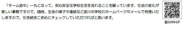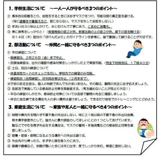 ご確認いただければと思います。卒業まで約1か月、引き続き、子どもたちの健全育成にご協力・ご支援のほどよろしくお願いします。