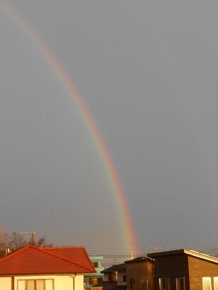 2月15日(月)17:00、小雨になり、西日が差した瞬間、東方面に虹が発生しました。