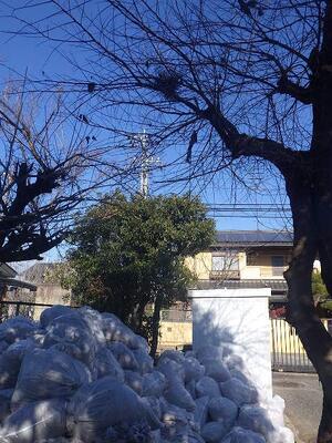 12月16日(火)、宇都宮市学校管理課学校業務機動班職長様、雀宮中機動班の皆様、陽南中機動班の皆様、総勢14名の方々にご協力いただいて、バックネット裏のすずかけの木の伐採を行いました。すずかけの木が斜めに傾き、遊歩道を利用する際に危険を感じてきたことから今回の決断に至りました。これまで、姿川中学校を見守ってきてくれたすずかけの木を伐採するに当たり、チェンソーを入れる方は手を合わせて畏敬の念を示していました。
