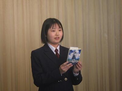 お昼の校内放送で、全校生徒から選出した「バトラー」がビブリオバトルを実施します。今回のバトラーは2年生2名、3年生1名の合計3名です。熱いバトルが繰り広げられました。