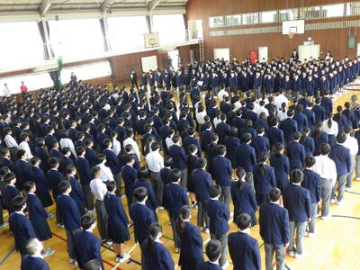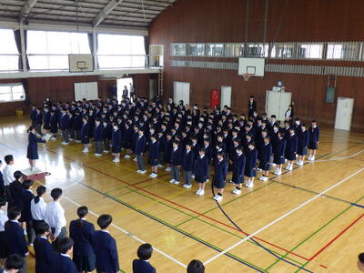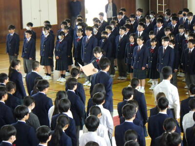 修了式では、修了証書授与、代表生徒の発表、校長先生のお話が行われ、この1年間の成長をかみ締めました。修了式の後には、生徒指導主事から、春休みの生活で気を付けてほしい大切なことについて話がありました。