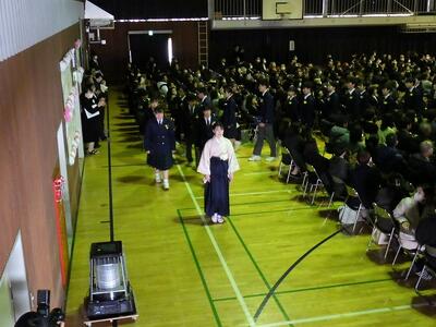 9日(月)には、3年生は各種表彰式の後、同窓会入会式、卒業式予行を行います。その後、在校生による卒業式準備を行い、当日を迎えます。