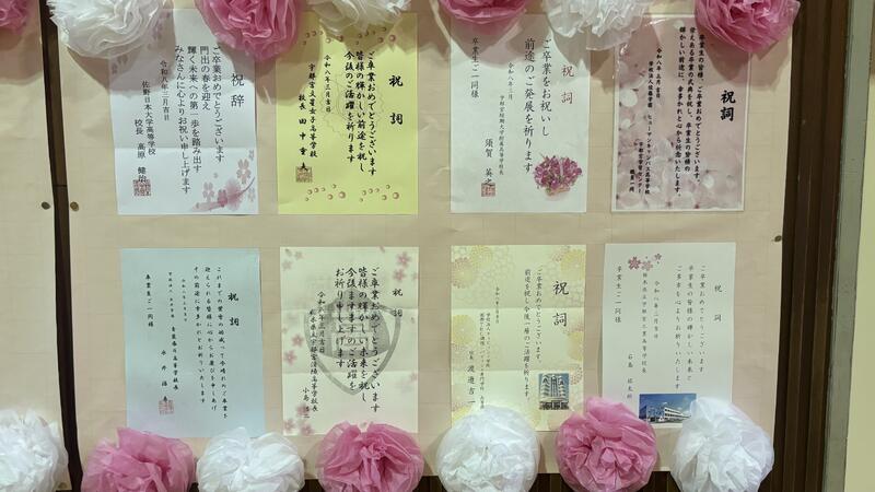 各方面より温かいご祝辞や励ましのお言葉を賜りましたこと、厚く御礼申し上げます。 皆様からいただいたメッセージは、生徒たちの門出に大きな彩りを添えてくださいました。