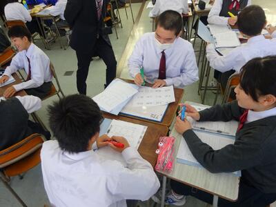 12月19日(金)は2時間目に2年英語で「比較級を使って、2つ(2人)を比べた表現ができる」の授業を公開しました。