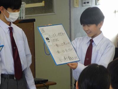 12月22日(月)、宇都宮市教育委員会から指導主事の先生をお招きして、授業研究会を実施しました。6時間目に1年4組の「学級活動」の授業を公開し、多くの先生方が参観、その後の研究会に参加しました。