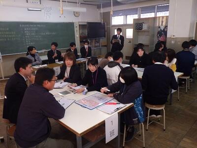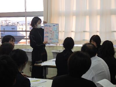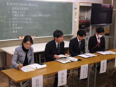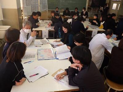 授業参観後の研究会では、あらかじめ示された授業を参観する際の視点に沿って、ねらいを達成するための手立てなどについて話し合いました。各グループの発表後には、指導主事の先生から講評をいただき、より授業力を高めるための貴重な知識をご教授いただきました。ありがとうございました。