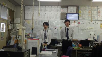 職員室でのあいさつのようす