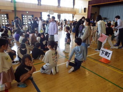 対面式の後は、登校班確認です。地区ごとに分かれ、各班の班長さんを中心に顔合わせと集合場所・時間の確認等を行いました。上級生が1年生を優しくエスコートする様子は、とてもすばらしかったです。