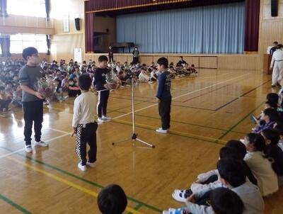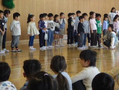 まず、新しく雀央小の仲間になった先生方の着任式です。一人一人の先生からお話があり、先生が「おはようございます」と言うと、子供たちは大きな声で「おはようございます!」と返します。先生が「よろしくお願いします」と言うと、また「よろしくお願いします!」と返していました。「児童代表お迎えの言葉」の中でも、「雀央小の児童は挨拶がよくできる」と紹介がありました。今年度も、元気に挨拶をしましょう!