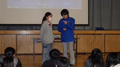 後半は、先輩から薬物を勧められ断るという場面を想定してのロールプレイングやクイズに挑戦したり、実際に薬物を使用した人の体の写真や薬物の標本を見たりしました。合言葉は「薬物はダメ、ゼッタイ!」です。