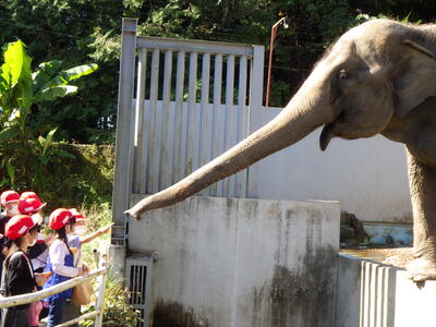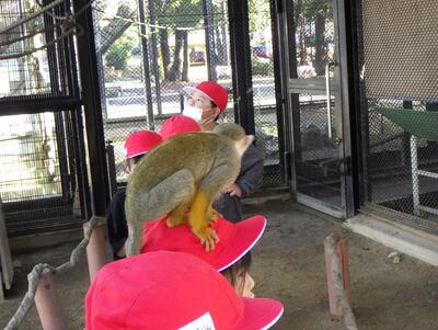 今年の1年生は、午前中ABCの3グループに分かれ、リス・ゾウ・ヤマアラシとのふれあい体験と動物見学、午後一番でワンワンチャレンジ(犬のショー)、その後、3~4名の班で遊園地の乗り物と盛りだくさんの内容でした。