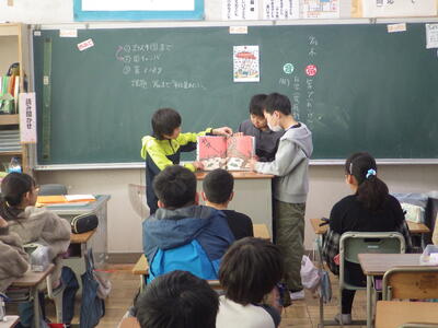 今日は、下町寿会をはじめ地域の皆様から1年生が昔遊び(おはじき・お手玉・あやとり・めんこ・けん玉・こま・竹馬・羽つき)を教えていただきました。子供たちは目を輝かせて夢中になって遊んでいました。「楽しかった!」「またやりたい!」という声が聞こえました。