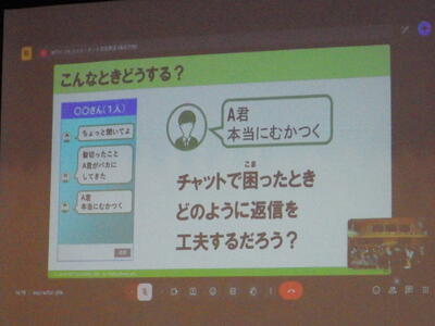 ネットトラブル防止に関する学習として、今年はNTTドコモ「スマホ・ネット安全教室事務局」の石野田ゆう子様を講師に、5・6年生を対象としてオンラインで実施しました。お申込みのあった数名の保護者の方々にもお越しいただきました。