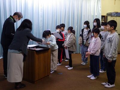 在校生から卒業生へ、心のこもった手作りの温かい会となりました。お互いに感謝の気持ちをもつことができたことでしょう。準備の段階から中心となってこの会を 盛り上げてくれた5年生に、6年生が「最上級生のバトンを渡すことができる」と言ってくれました。