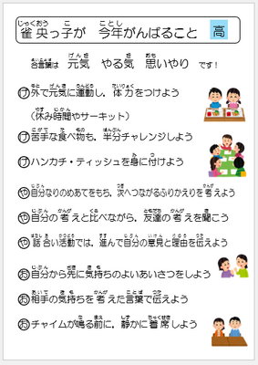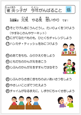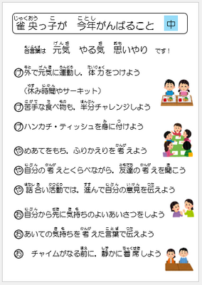 また、表彰の後には、児童指導主任から「雀央っ子が今年がんばること」のまとめについての話がありました。アンケートがあるようですので、それぞれがこの1年を振り返ってほしいと思います。