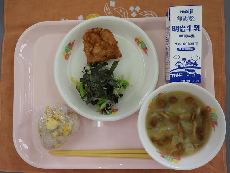 今日の給食 投稿日時 : 14:34 雀宮東小学校管理者 〇こんだて おにぎりの日 おにぎり 牛乳 鶏肉のからあげ さっぱり和え 味噌汁 {{options.likeCount}} {{options.likeCount}}