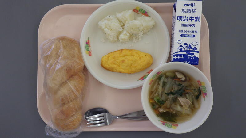 今日の給食 投稿日時 : 10/08 雀宮東小学校管理者 〇こんだて きなこ揚げパン 牛乳 オムレツ こふき芋 はくさいスープ {{options.likeCount}} {{options.likeCount}}