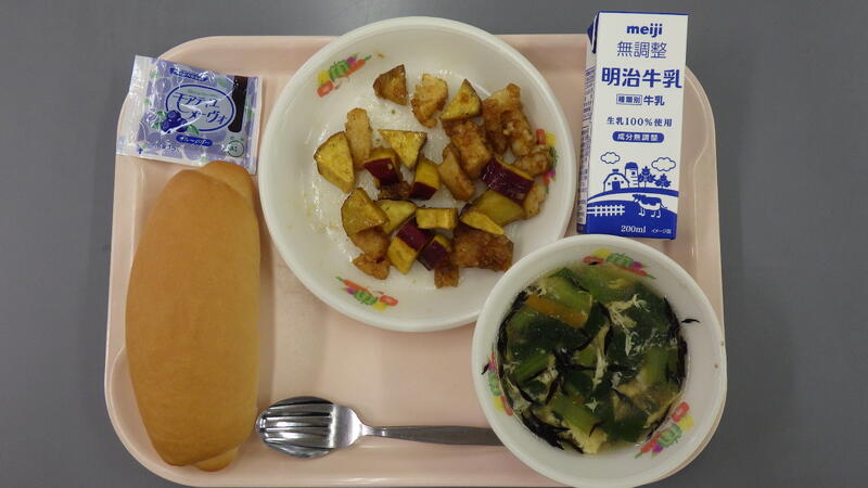 今日の給食 投稿日時 : 10/01 雀宮東小学校管理者 〇こんだて コッペパン 牛乳 ブルーベリージャム いかとさつま芋の揚げ煮 ひじきと卵のスープ {{options.likeCount}} {{options.likeCount}}