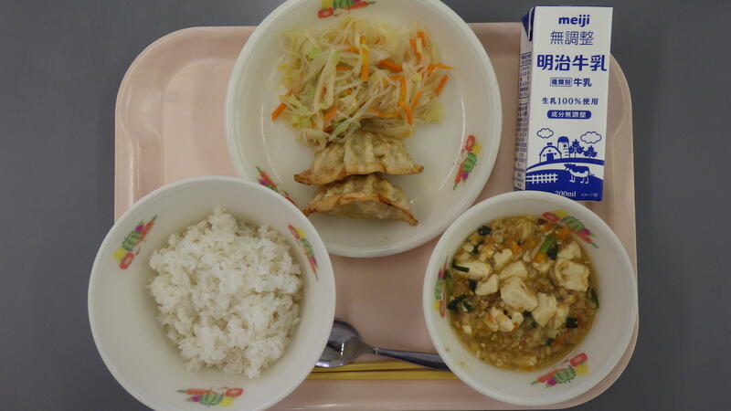 今日の給食 投稿日時 : 10/21 雀宮東小学校管理者 〇こんだて 麦入りご飯 牛乳 揚げ餃子 バンサンスウ マーボー豆腐 {{options.likeCount}} {{options.likeCount}}