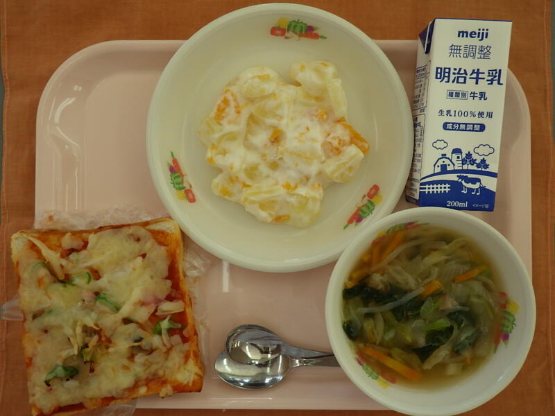 今日の給食 投稿日時 : 12:17 雀宮東小学校管理者 〇こんだて ピザトースト 牛乳 野菜スープ フルーツヨーグルト {{options.likeCount}} {{options.likeCount}}