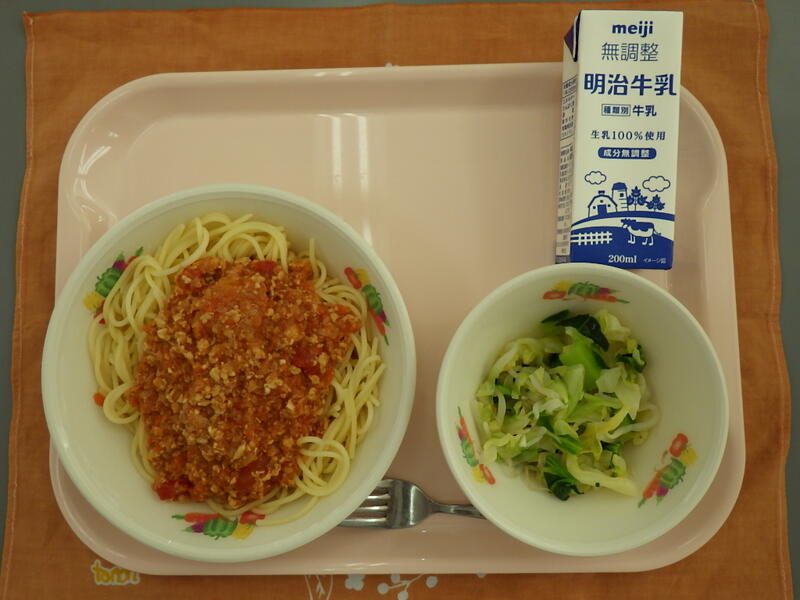 今日の給食 投稿日時 : 13:26 雀宮東小学校管理者 〇こんだて ミートソーススパゲティ 牛乳 ゆで野菜 イタリアンドレッシング {{options.likeCount}} {{options.likeCount}}